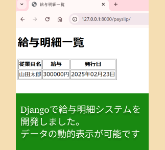| Django | 実績: ユーザーが直感的に操作できるインターフェースを搭載した商品管理システムを開発しました。 | 効果: Excelファイルへの手動入力を省略し、作業効率の向上に貢献しました。また、入力ミスの削減にも寄与しました。 |